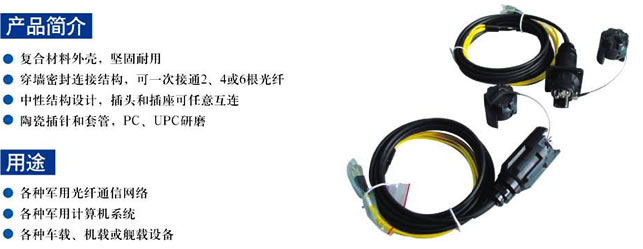 該GYZ光纖活動連接器【特征】● 復合材料外殼,堅固耐用● 穿墻密封連接結構,可一次接通2、4或6根光纖● 中性結構設計,插頭和插座可以任意互連● 陶瓷插針和套管,PC、UPC研磨GYD光纖活動連接器【用途】● 各種軍用光纖通信網絡● 各種軍用計算機系統● 各種車載、機載或艦載設備。
